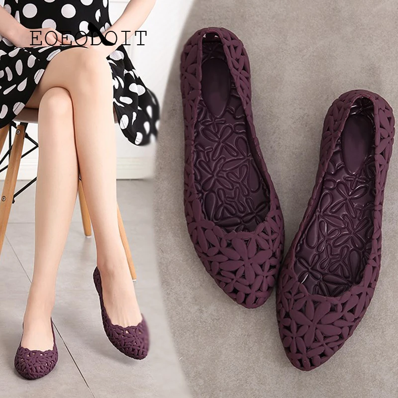 Женские босоножки на плоской подошве EOEODOIT, желейные, с круглым ...
