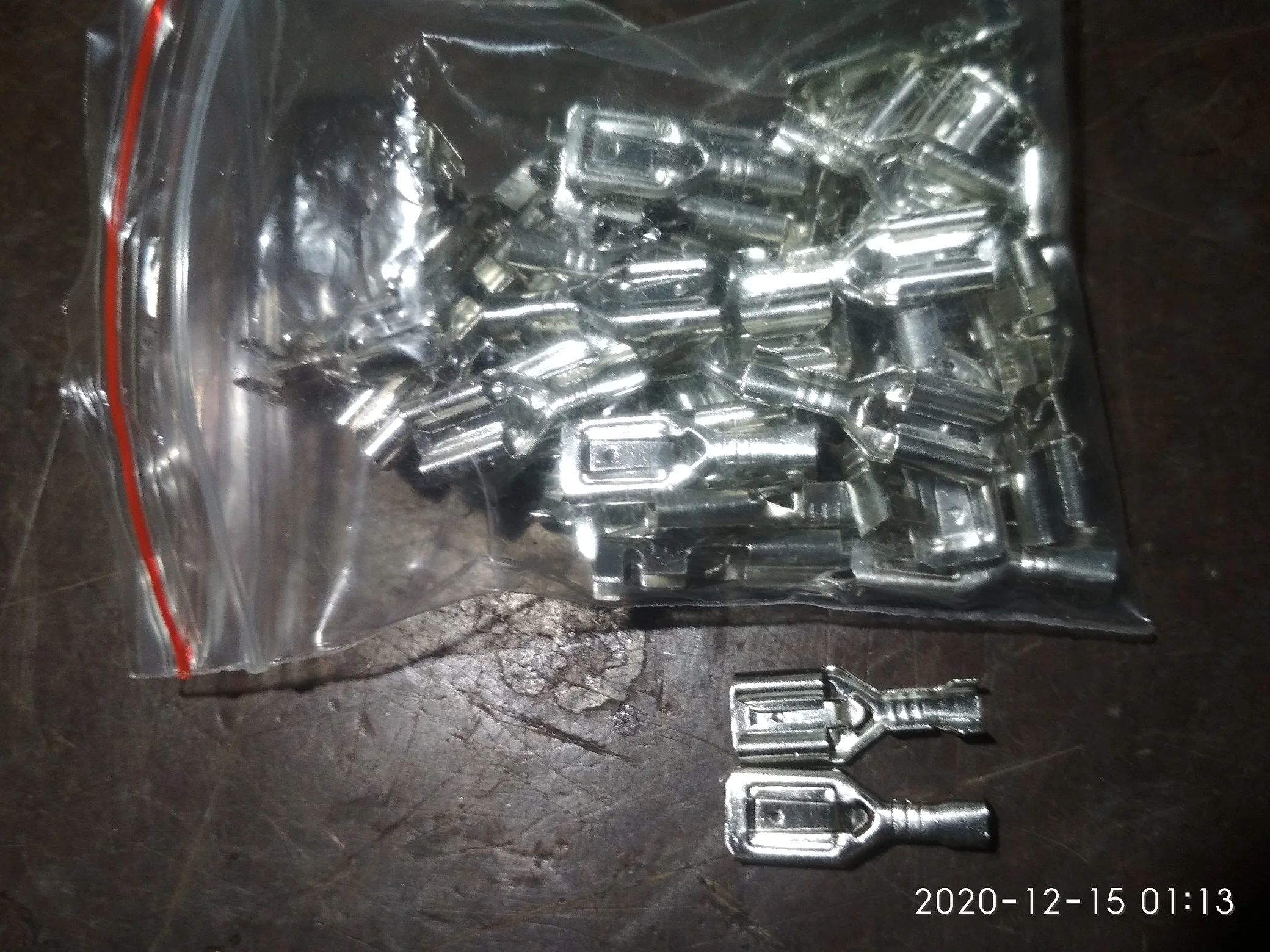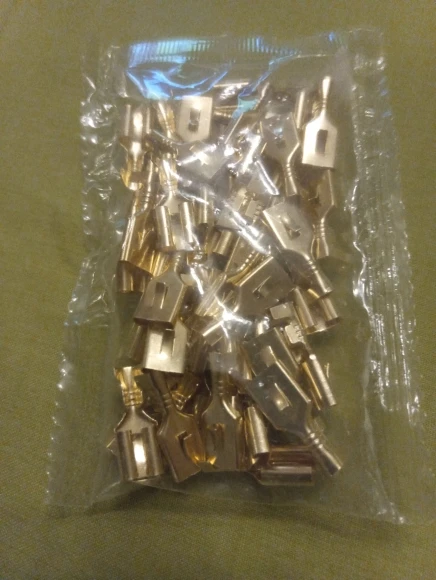 До Брянской области примерно за месяц, упаковано в жёлтый мягкий пакет, всё цело не чего не повреждено. Клеммы похожи на наши отечественные средние, но без усика с сзади, имеют внутренний отжимной усик, встречал такие в бытовой технике в виде одиночных контактов, без разъёма, материал латунь лужённая.