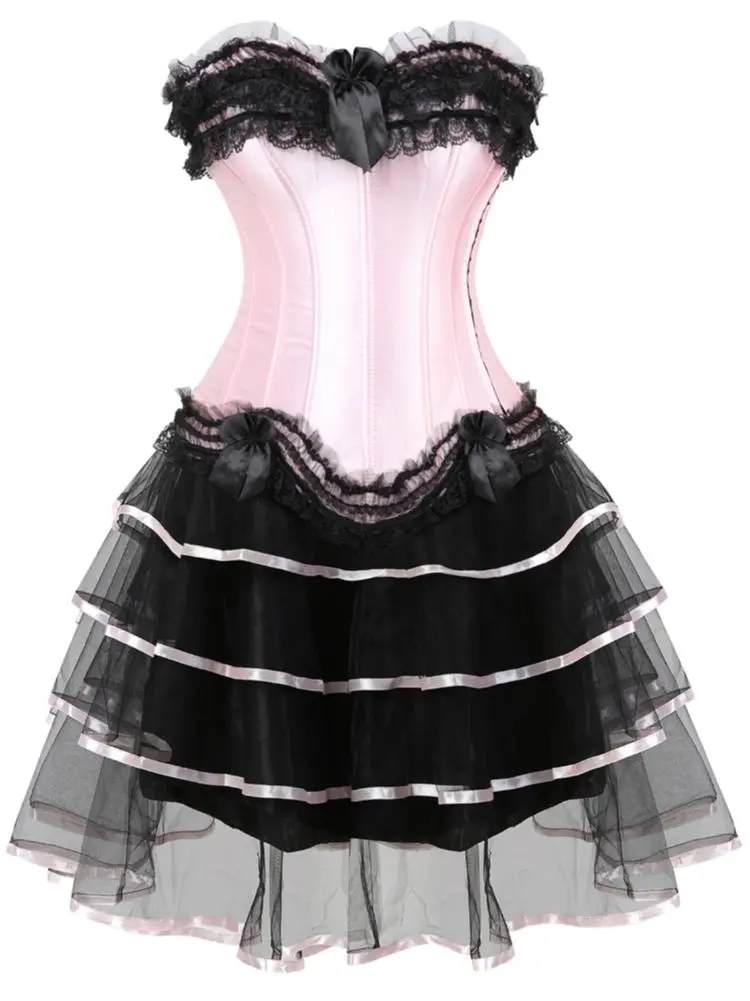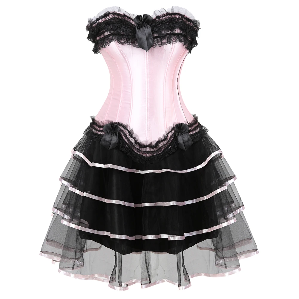 Сексуальный кружевной корсет для женщин размера плюс костюм overbust винтажный корсет платье комплект tutu корсет Викторианский корсет юбка розовый