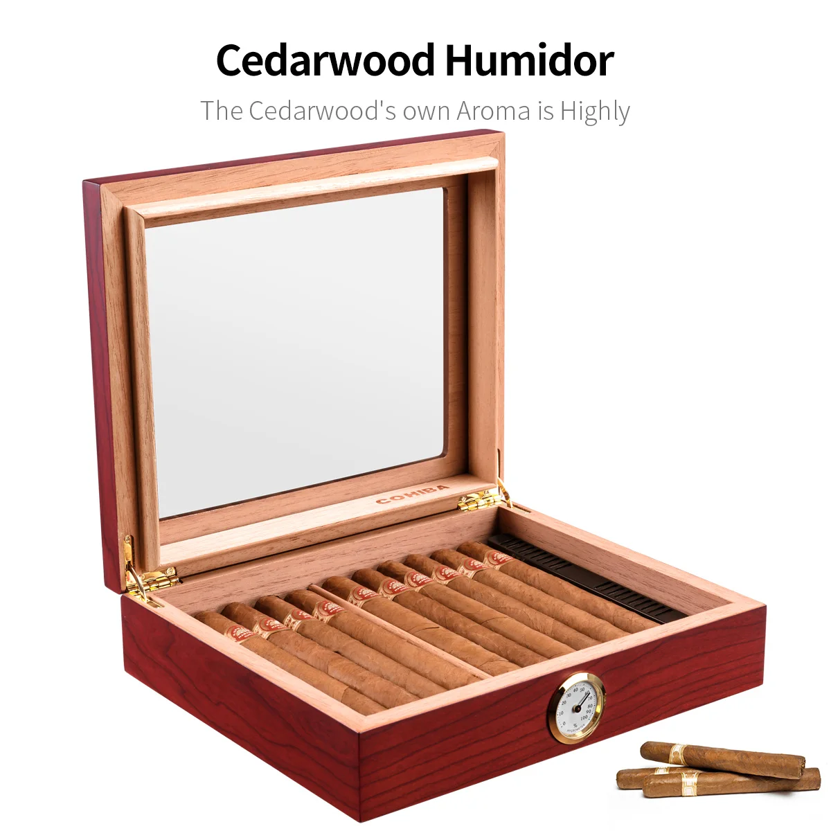 Портативный кедровый хьюмидор для сигар, ручка с увлажнителем, гигрометром, контейнер для хранения сигар, 20-30 шт.