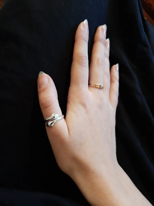 Кажется более плоским, чем на фото, и не может быть легко изменен, что хорошо. Но выглядит немного дешево, это что-то в руках: у них нет теней или придания формы, и по какой-то причине у них очень грубые ногти? Будет хорошо для подростка, возможно, но он плотно сидит на моем пальце