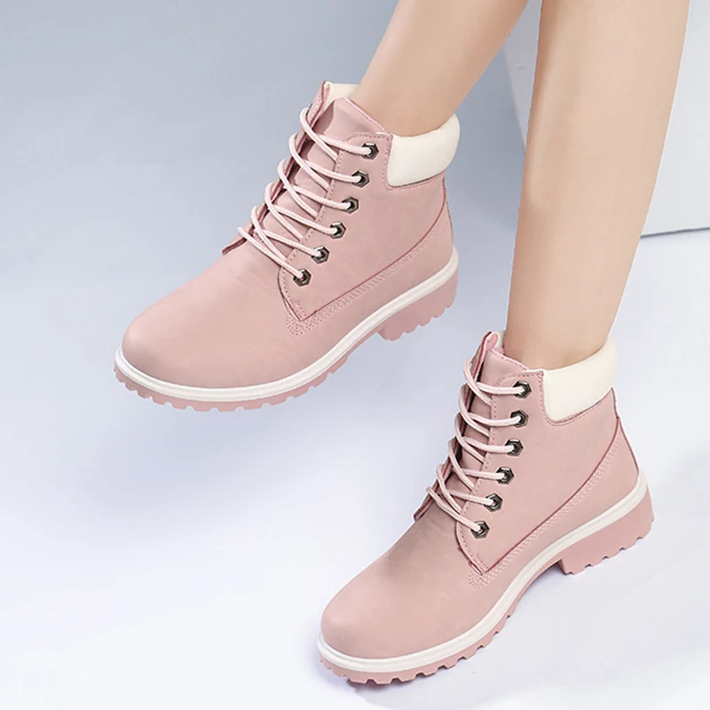 Женские кожаные ботинки на шнуровке высокого качества, зимние ботинки с высоким берцем на теплом меху из плюша, женская обувь, 2019