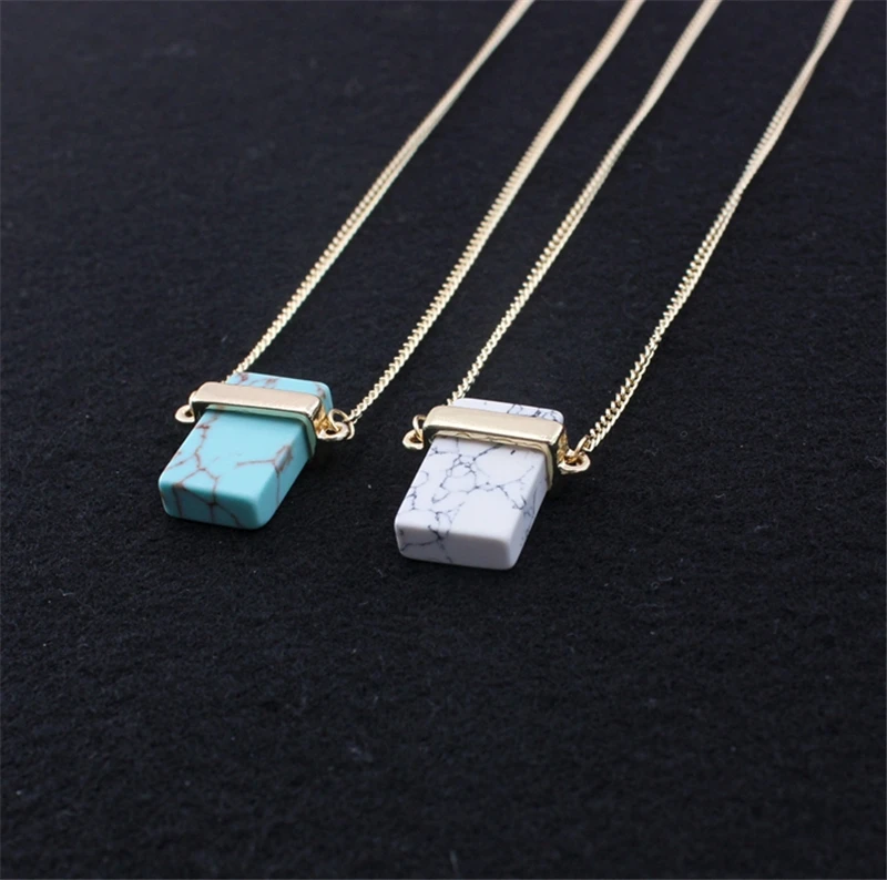 Женское Ожерелье с шестигранной подвеской из натурального камня