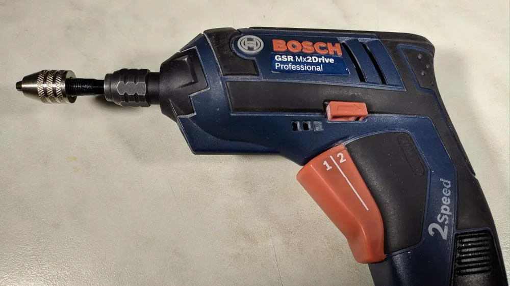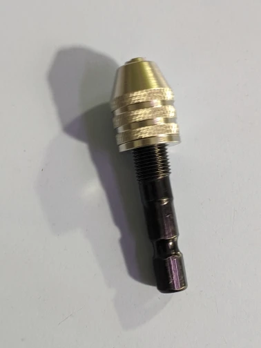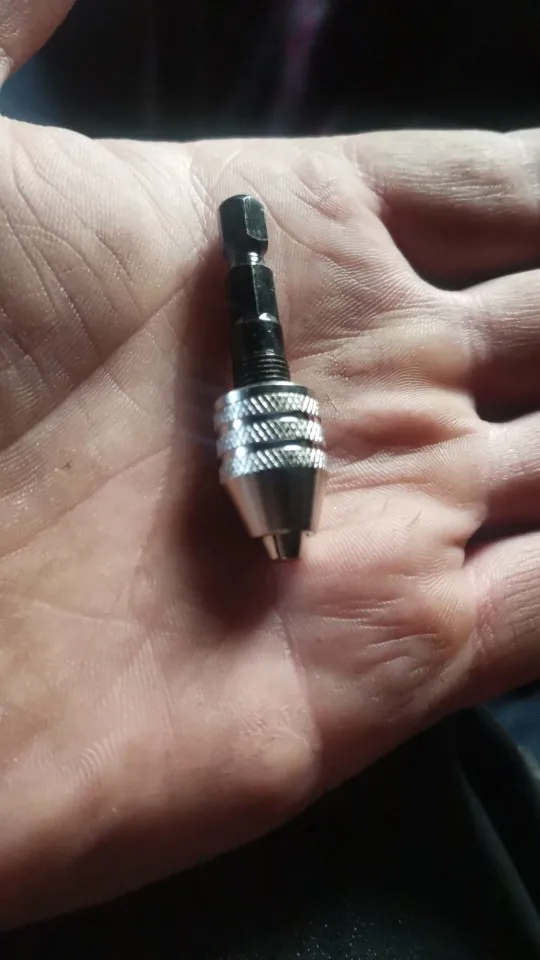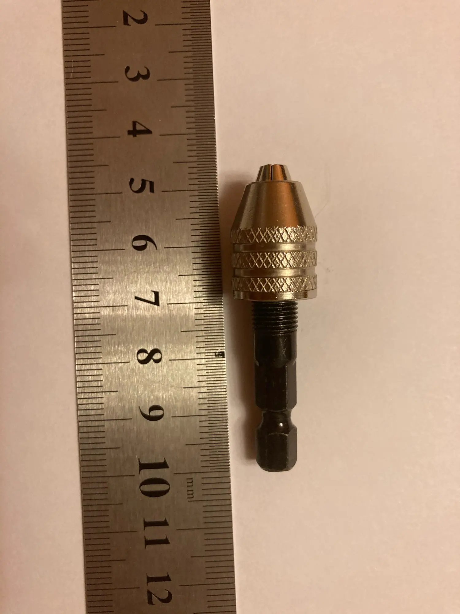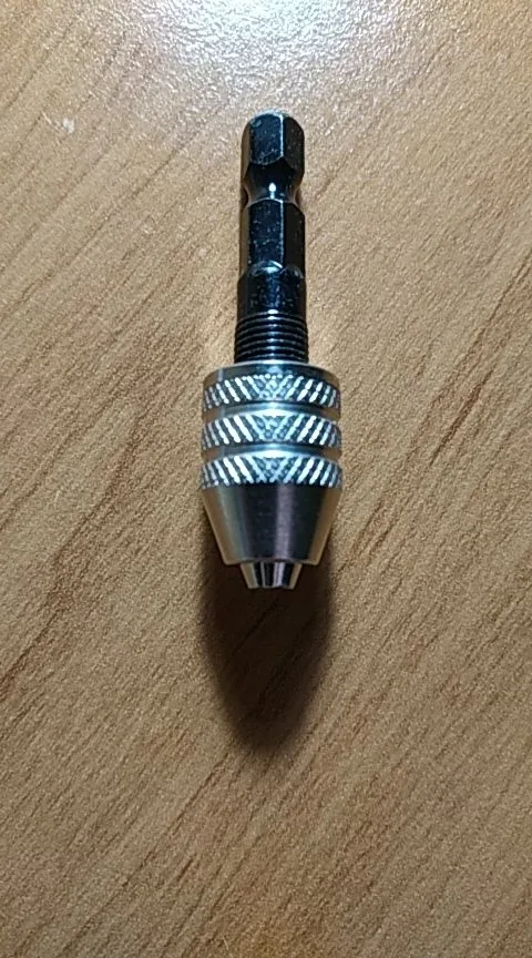 Патрончик классный, сделан аккуратно, смотрится как игрушечка, приятно держать в руках. Хвостовик и губки - стальные, головка - алюминиевый сплав, оптимальное сочетание. Брал не столько для быстрой замены бит на сверло, сколько как удлинитель сверла в труднодоступных и узких местах при отсутствии длинного сверла (даже можно применить в ряд несколько держателей бит) и зажима очень тонких сверел, вплоть до 4,2 мм. В моем случае биения практически нет. Своих денег стоит однозначно. Продавцу спасибо!