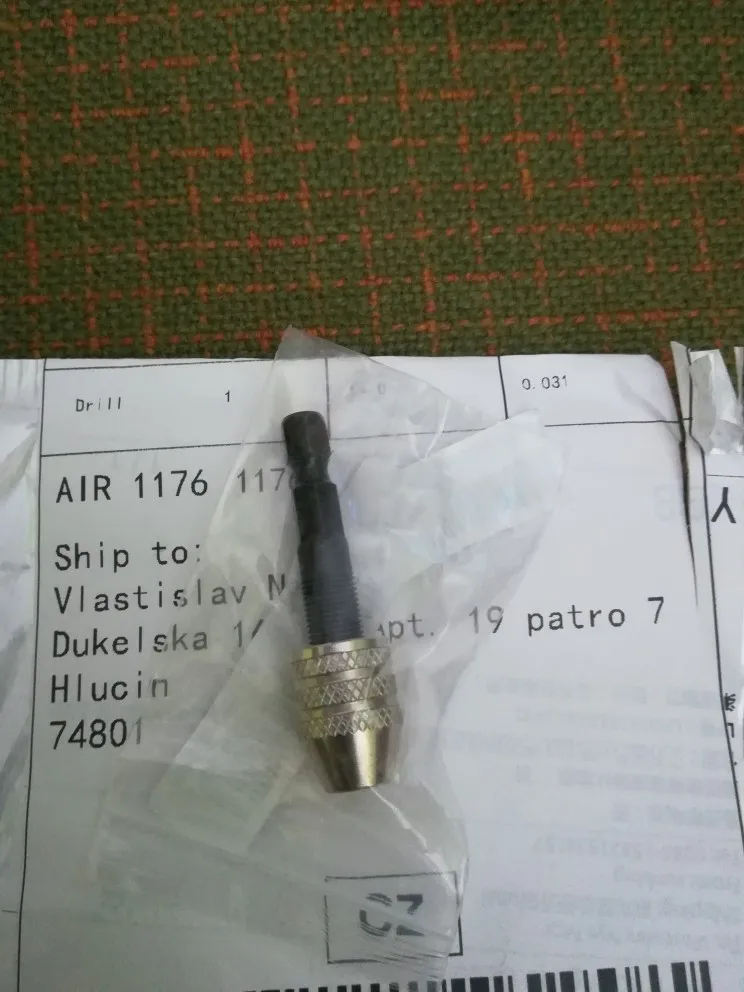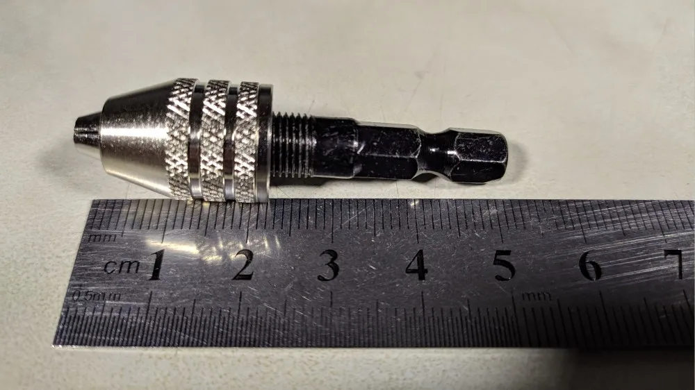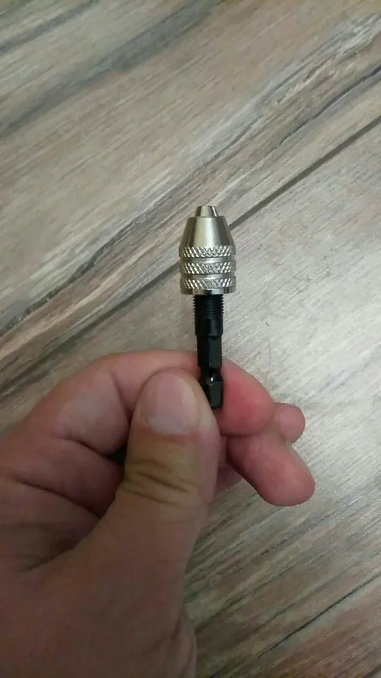 Быстрая доставка в Москву (3 недели). Сделано качественно, металл, губки патрона сходятся очень плотно. Зажим губок патрона осуществляется штифтом при его вкручивании в патрон (они снизу давит на губки и они поднимаются вверх). Поэтому при правом сверлении (вращение штифта и патрона по часовой стрелке) проблем нет, всё только сильнее зажимается. При левом вращении (против часовой стрелки) штифт может выкрутиться из патрона, губки разойдутся и сверло выпадет из зажима). Это не является недостатком, просто особенность конструкции. Поэтому не помешает контргайка под патрон. Товар и продавца рекомендую.