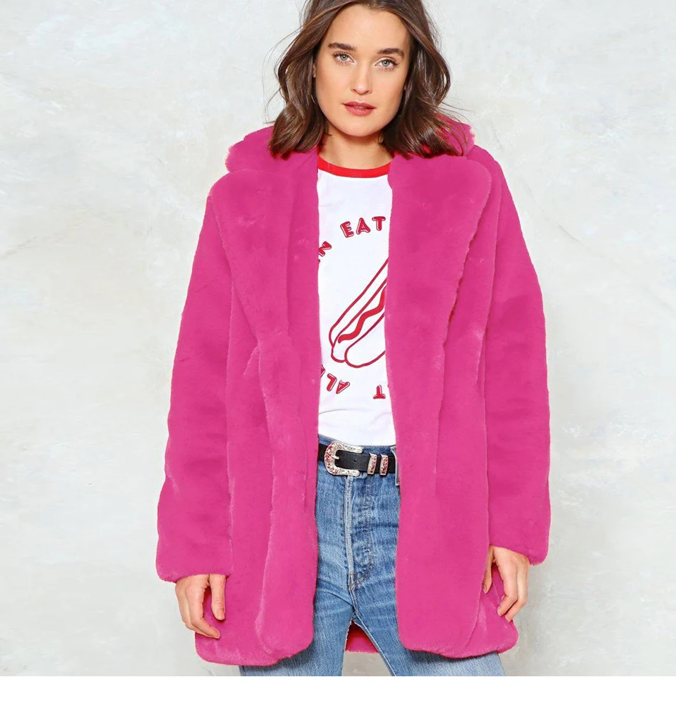 Женское зимнее теплое Свободное пальто с длинным рукавом, из искусственного меха