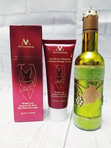 Антицеллюлитный массажный крем для похудения с маслом Ши. Крем содержит различные смягчающие травяные экстракты, формулу масла ши, которые работают вместе, чтобы ускорить сжигание жира, улучшить кровообращение тела. Способ применения: Нанести необходимое количество крема на область, которую нужно массировать. Медленно растирать до полного впитывания крема. Обернуться в полиэтиленовую пленку на 30-40 минут. Крем разогревающий, имеет приятную консистенцию и легкий приятный аромат. Крем заказала впервые, надеюсь эффект порадует.
