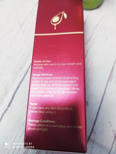 Крем для похудения приходит в тюбике, упакованном в фирменную коробочку. Имеется инструкция на английском языке, срок годности указан на упаковке. Крем белый, достаточно плотной текстуры с приятным сладковатым ароматом. Быстро впитывается, не оставляя следов и липкости. Крем лучше всего использовать для массажа. 10-25 минут в день и будет вам счастье! Доставка до Омска заняла около месяца. Посылка пришла в почтовой коробке. Трек номер отслеживался на всем пути следования.