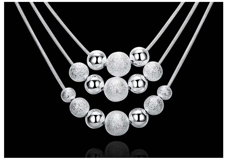 Серебро 925 ожерелье s ювелирные изделия многослойная Песочная бусина ожерелье для женщин Свадебные Ювелирные изделия Подарки