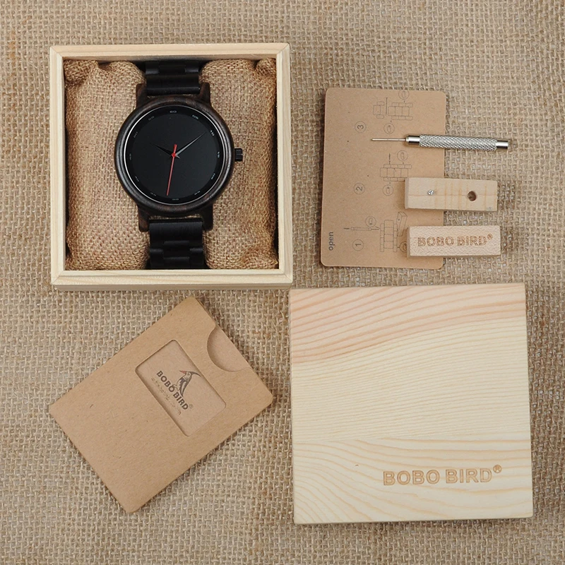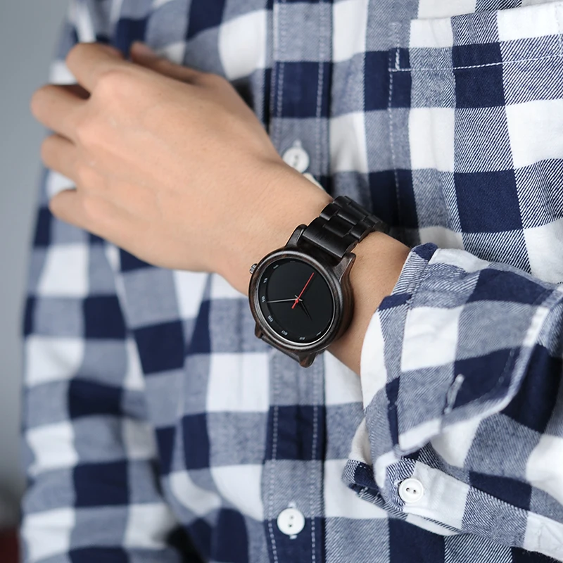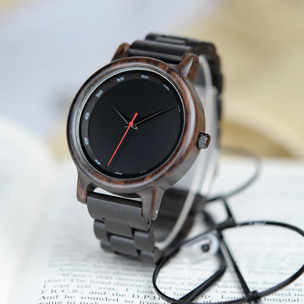 BOBO BIRD все эбеновые деревянные часы простые черные кварцевые муж...