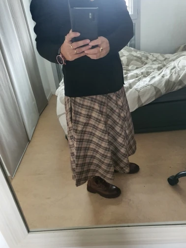 Сама юбка довольно хорошего качества и выглядит очень похожей на предоставленное изображение. Однако не ожидайте, что материал будет толстым и теплым. Пояс, который поставляется с этой юбкой, довольно тонкий и дешевый, но, к сожалению, он съемный.