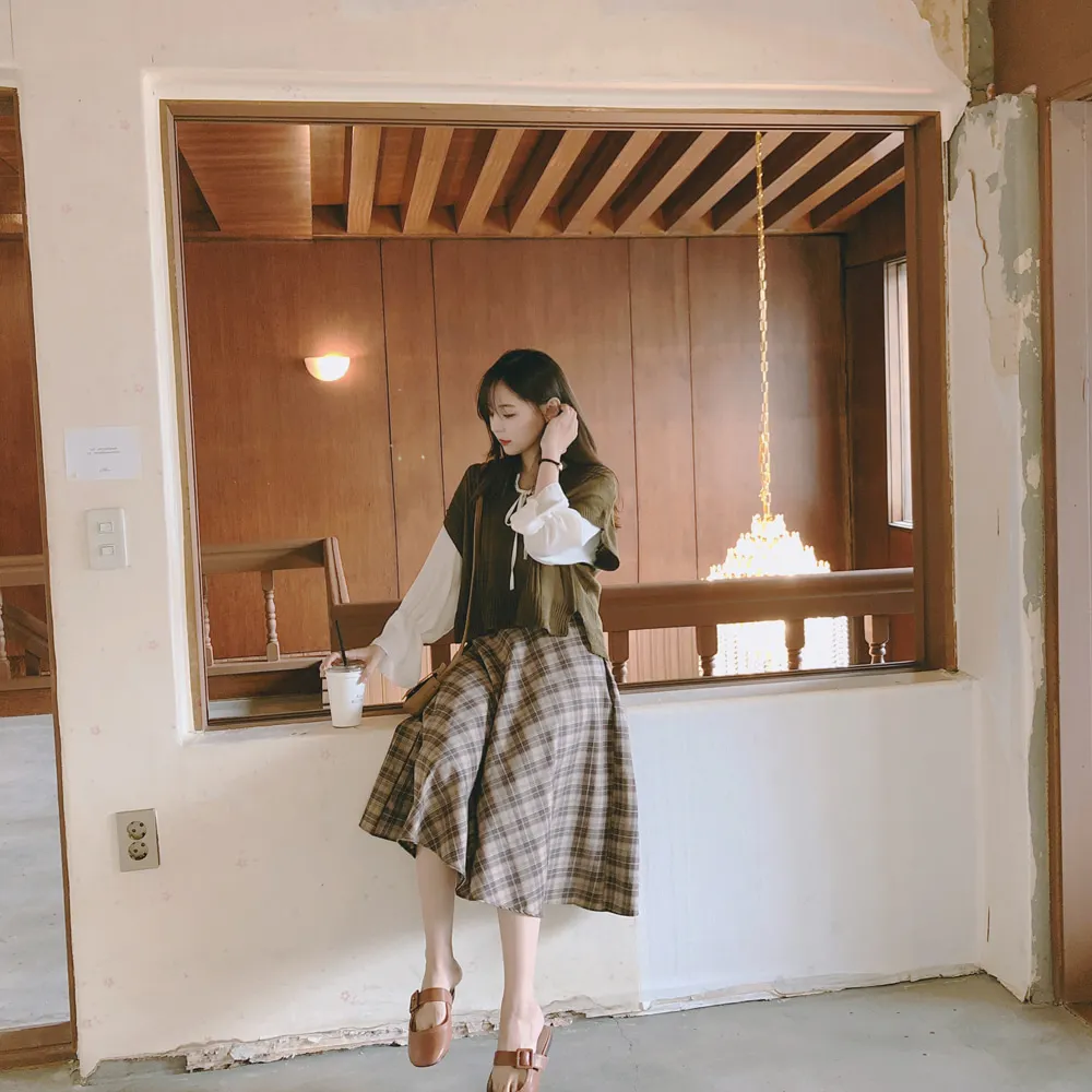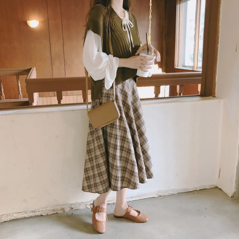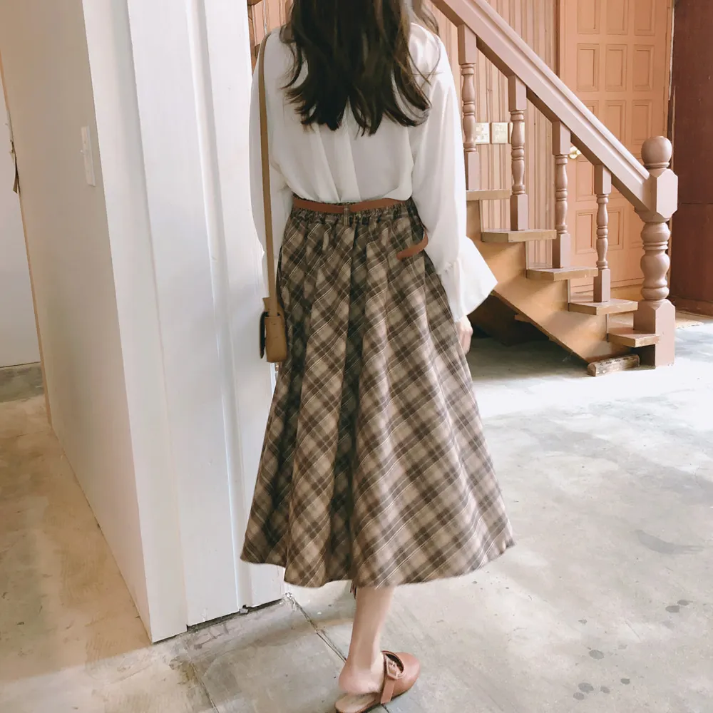 Юбка школьная длинная в клетку, с эластичной талией, в стиле Харадзюку