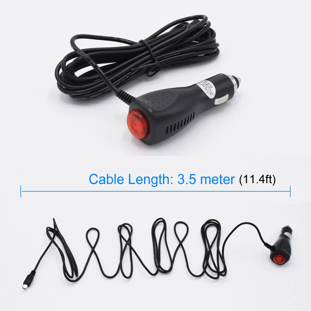 Автомобильное зарядное устройство XCGaoon 5 В, 2 А, Micro USB, с переключателем, для смартфонавидеорегистраторакамеры GPS, вход 12 В, 24 В, длина кабеля 3,5 м, 11,4 фута