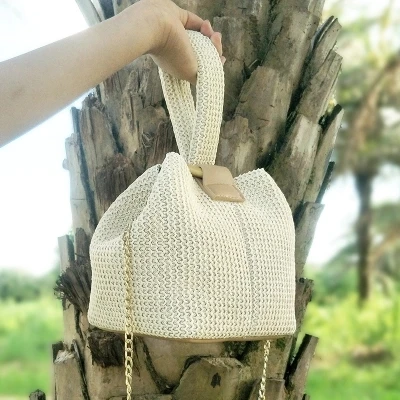 Брендовая Соломенная Сумка для женщин, пляжная сумка, Индивидуальная сумка через плечо с замком, Женская винтажная вязаная модная сумка через плечо ручной работы