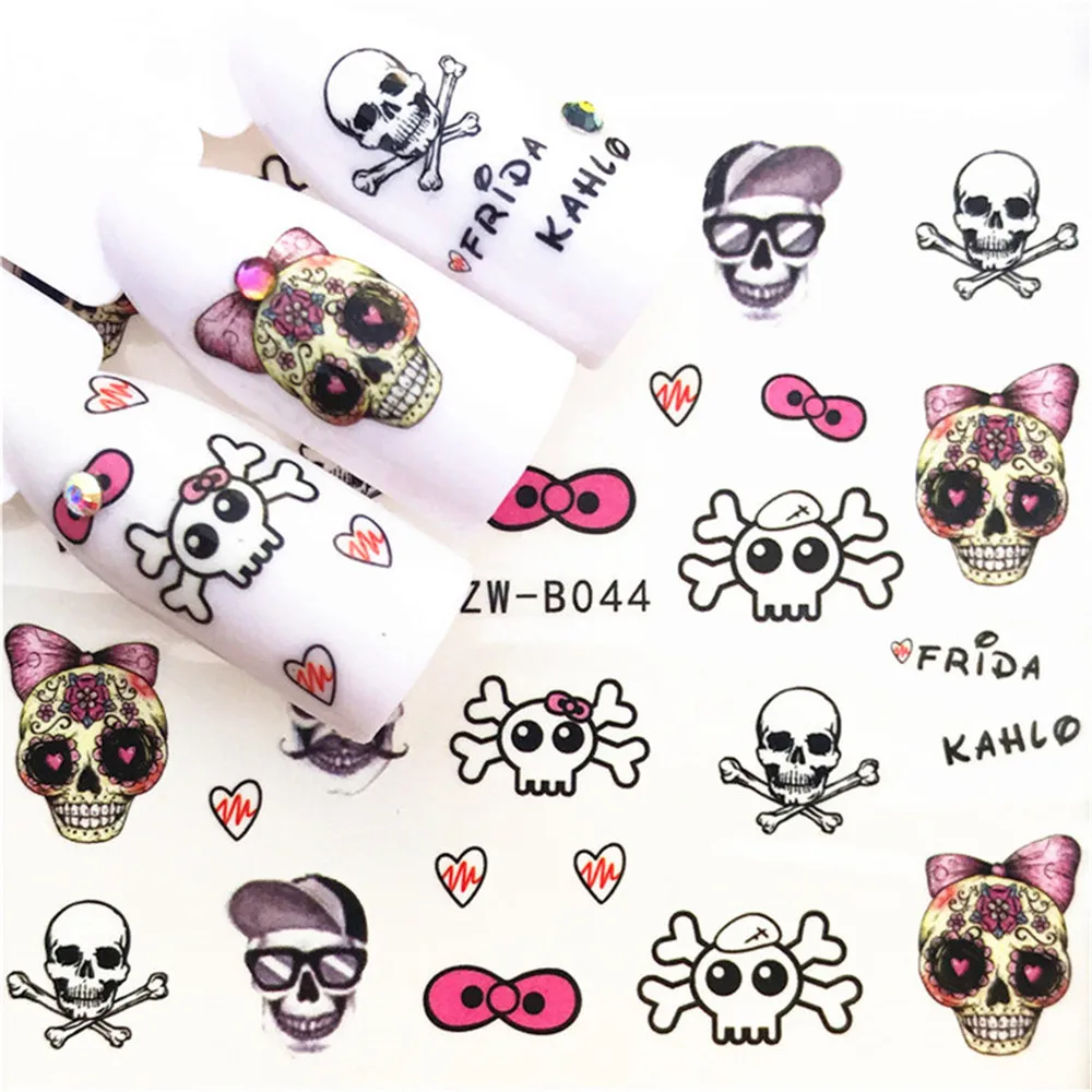 1 шт. череп Хэллоуин завод наклейка на ногти водная наклейки для женщин белое платье с цветочным рисунком, с рисунком бабочки и наклейками, которые переводятся на ногти, с помощью художественное оформление m3b8v4