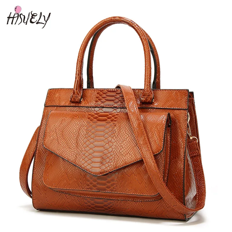 HISUELY модная женская кожаная сумка-тоут, сумка через плечо со змеиным узором, кожаная сумка с сумкой, женская сумка-тоут, bolsos