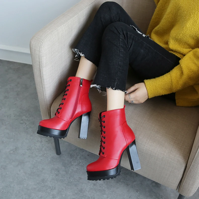 Женские ботинки на платформе, демисезонные ботильоны на высоком каблуке, большие размеры 34-43, N267