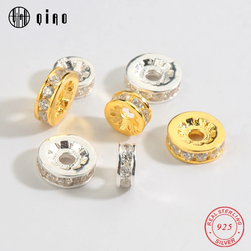 Бусины из стерлингового серебра 925 пробы и золота, круглые бусины с отверстием, ювелирные изделия для браслетов и ожерелий, 6-8 мм