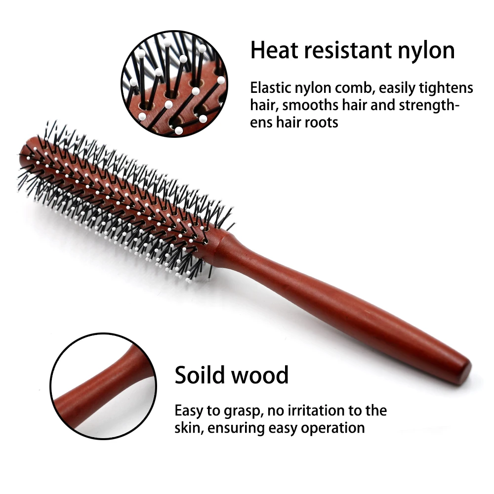 Mythus, деревянная круглая искусственная щетка для волос с шариковым кончиком, Антистатическая натуральная щетка для укладки волос, парикмахерский инструмент, деревянная круглая расческа