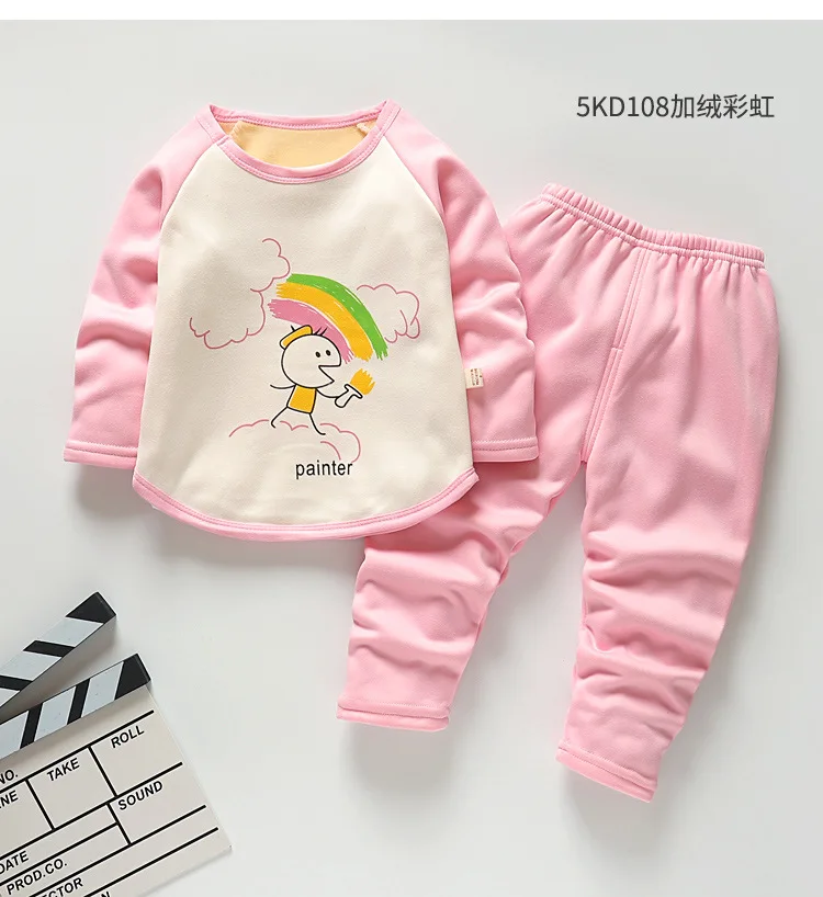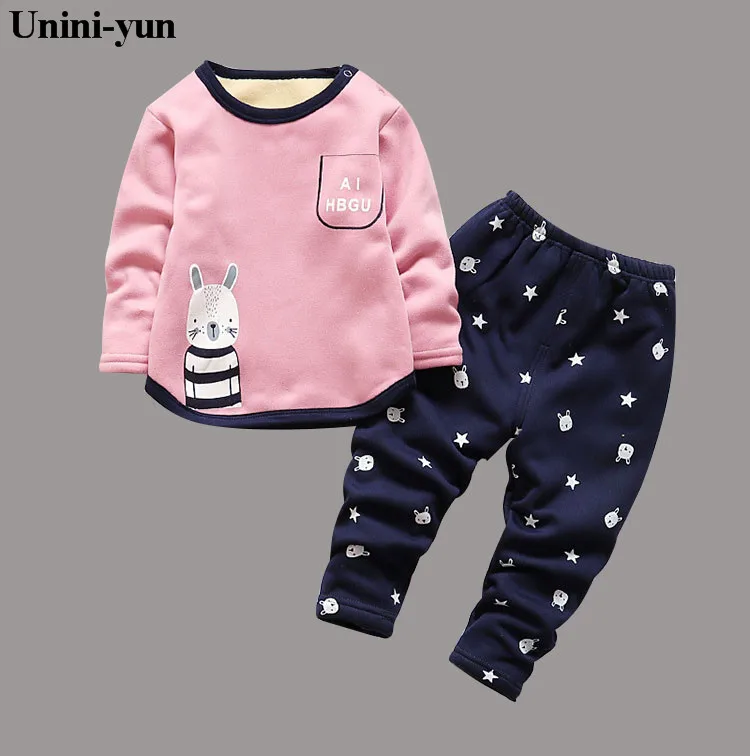 Спортивный костюм для мальчиков и девочек, детская одежда, спортивный костюм, Высококачественная теплая шерстяная Футболка с принтом кролика и штаны