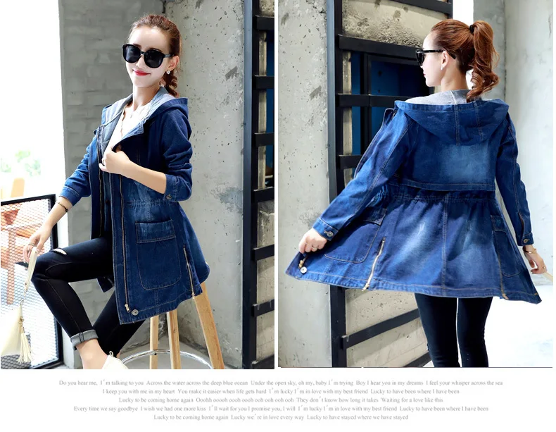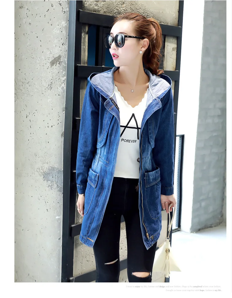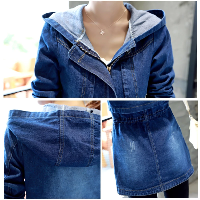 Куртка женская джинсовая с капюшоном, однотонная приталенная в стиле Харадзюку, свободная винтажная верхняя одежда из денима, весна-осень 2021