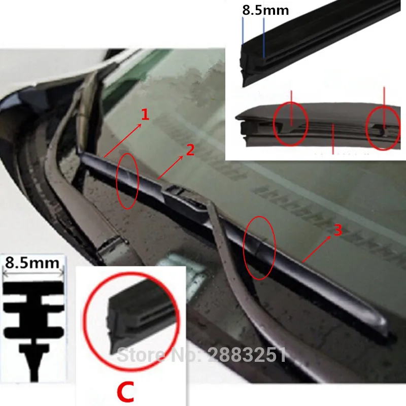 5 видов резиновых лент для стеклоочистителя на фотографиях ниже: