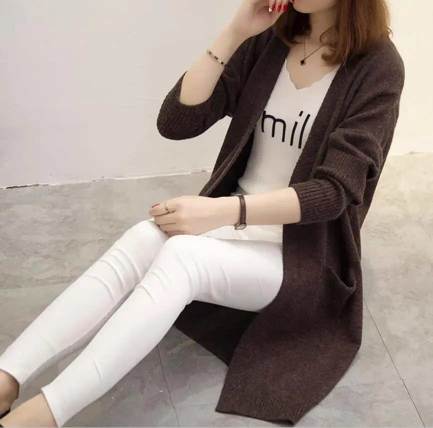 Кардиган женский вязаный, зимний, теплый, свободный, 2018
