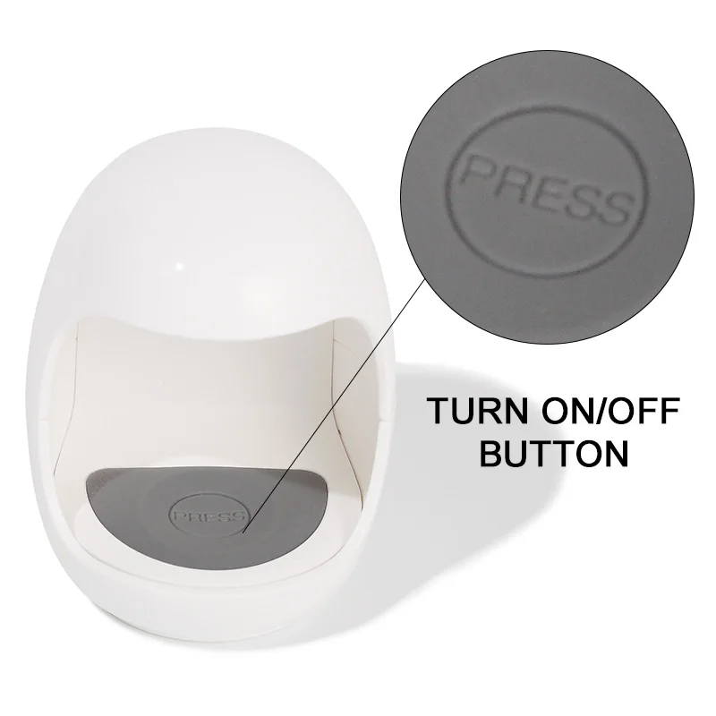2. Нажмите кнопку ВКЛ/ВЫКЛ сверху, чтобы включить лампу для ногтей. Время по умолчанию составляет 45 С.