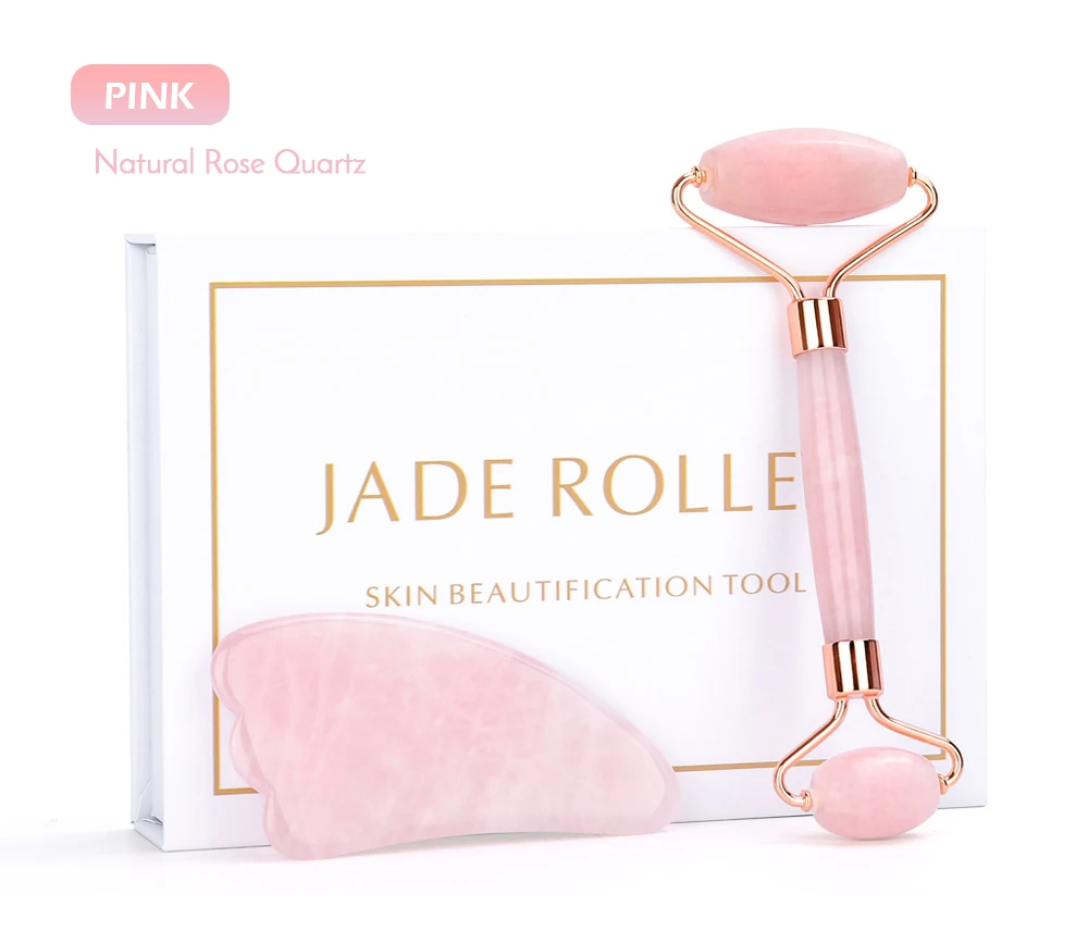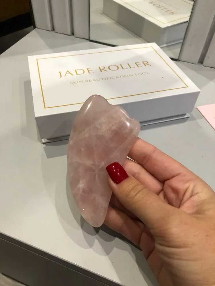 Роллер-скребок для лица, из розового кварца, нефрита