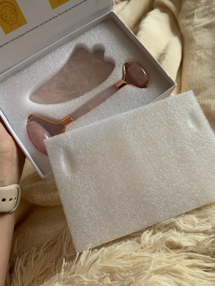 Это первая вещица, на которую прям захотелось оставить отзыв. 1. Очень быстрая доставка. До Воронежа доставили за 7 дней. С продавцом не общалась, но приходили оповещения об отправке, прохождении таможни и прибытии в пункт выдачи. Забирала в пятёрочке около дома на кассе. Очень удобно. 2. Все тщательно упаковано, коробку совсем немного помяли, но это не бросается в глаза и никак не портит общую картину. Содержимое коробочки целое. Роллер и скребок без сколов и трещин. 3. Приятный материал, тяжёленький. Сразу чувствуется, что это не какой-то голимый пластик, а именно камень. Роллер не скрипит при прокручивании, скребок со всех сторон гладкий, без зазубрин и засечек. 4. Советую к заказу, выглядит просто бомбезно. Подойдёт и в качестве подарка, ведь аналогичные наборы продают в 2-3 раза дороже в магазинах и инста-шопах.