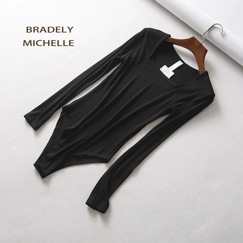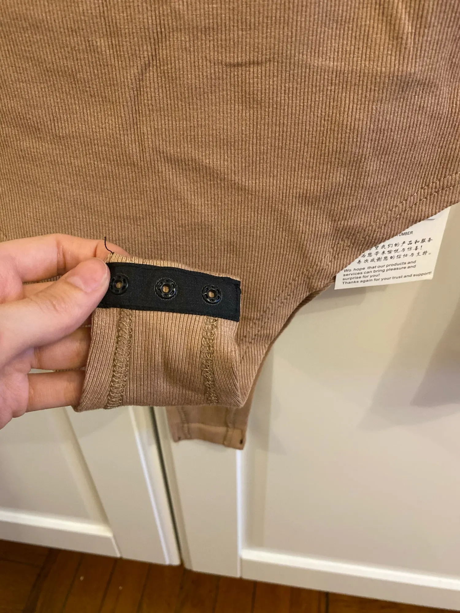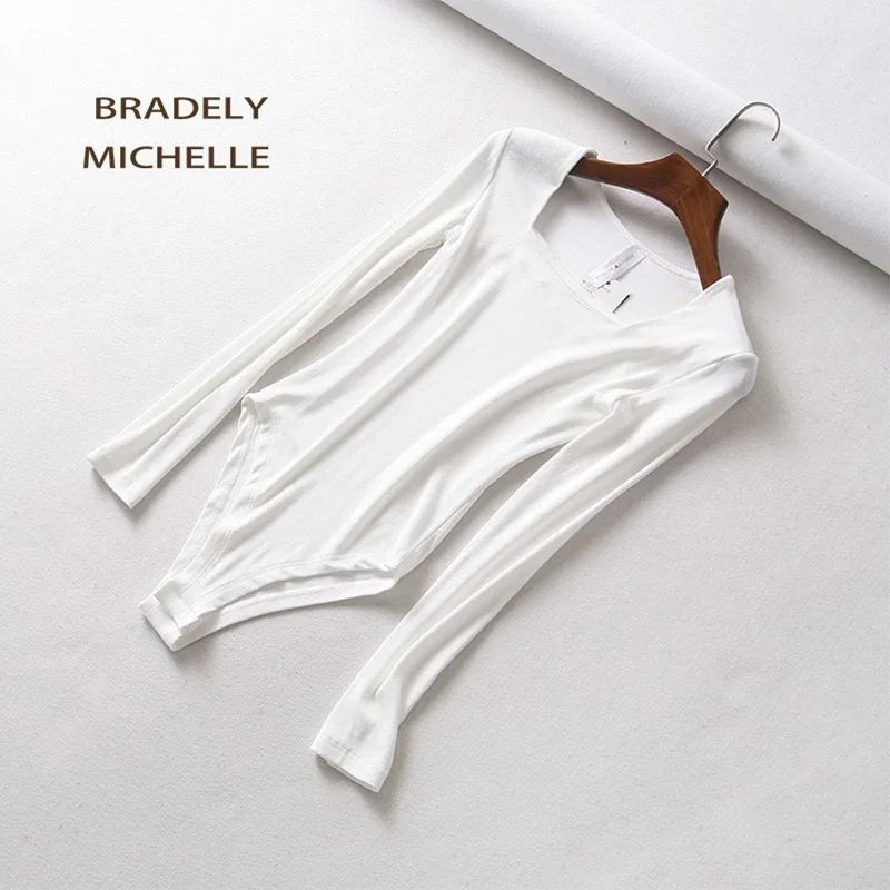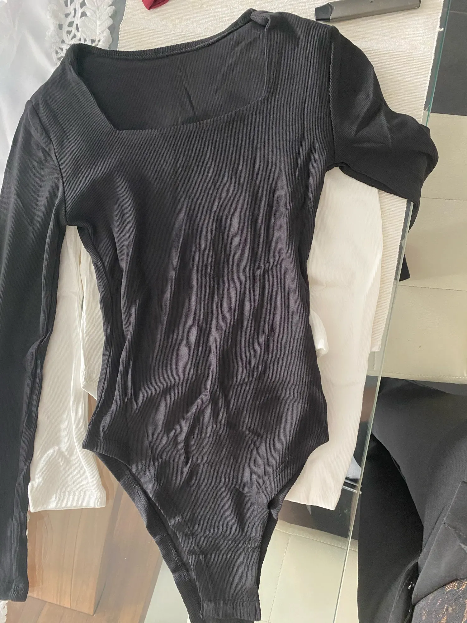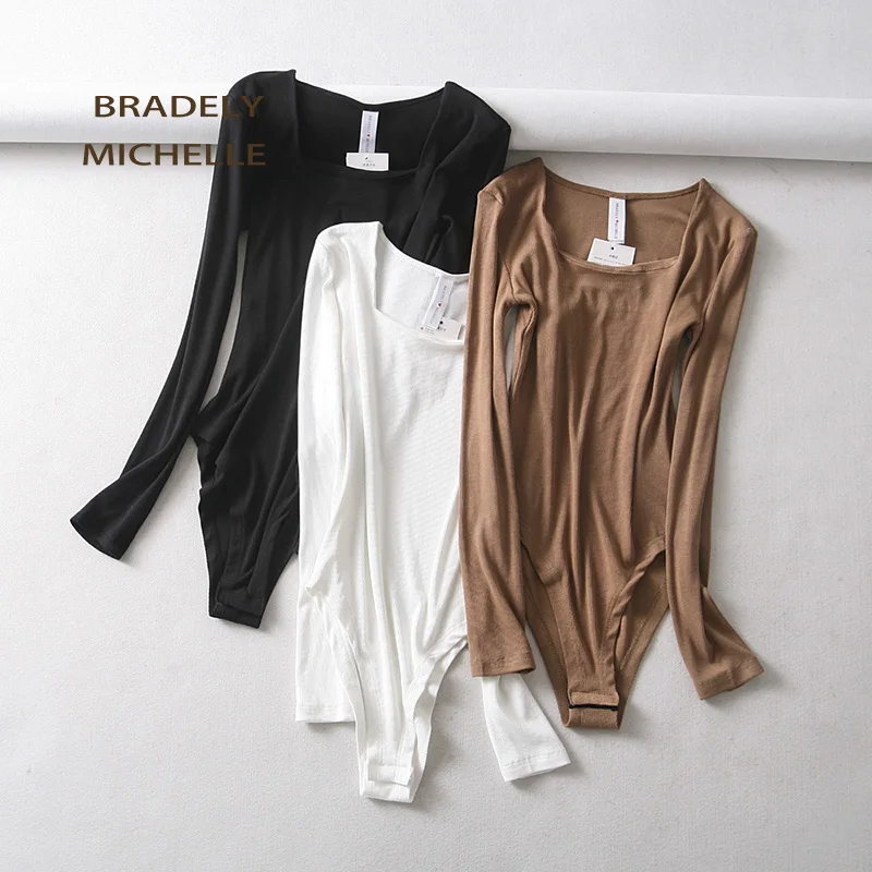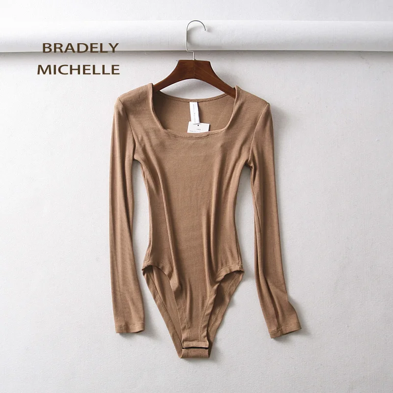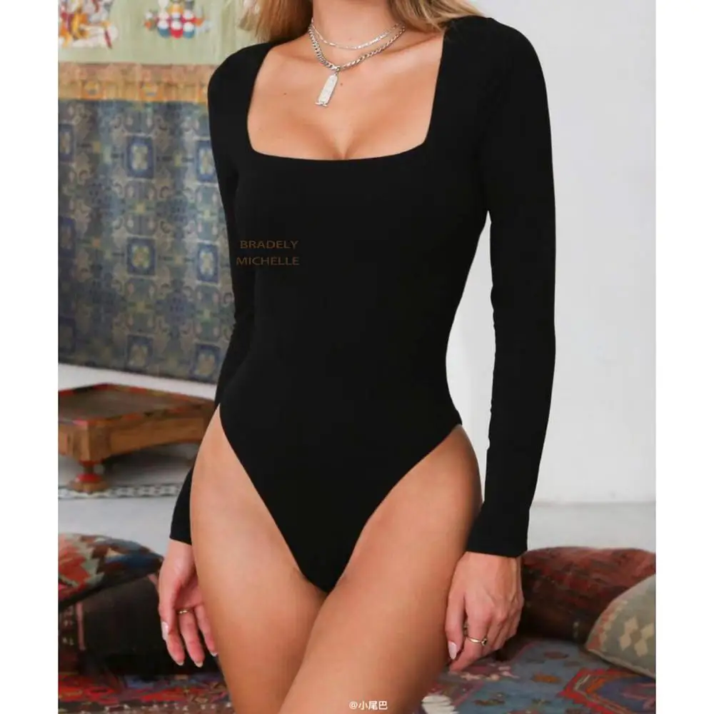 Женское трикотажное боди с длинным рукавом, квадратным вырезом и скрытыми пуговицами