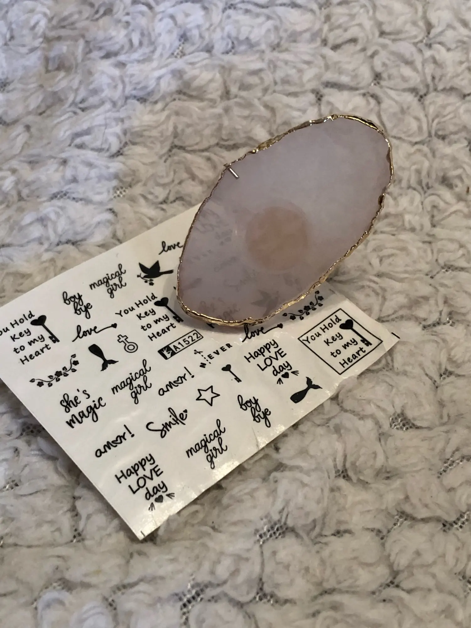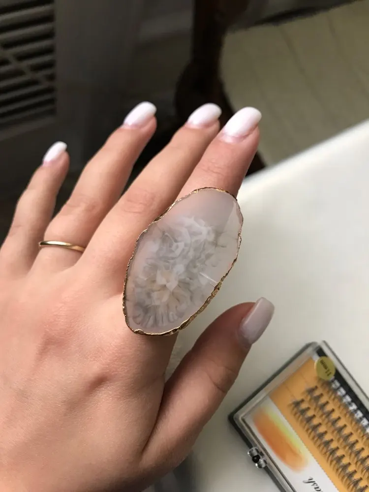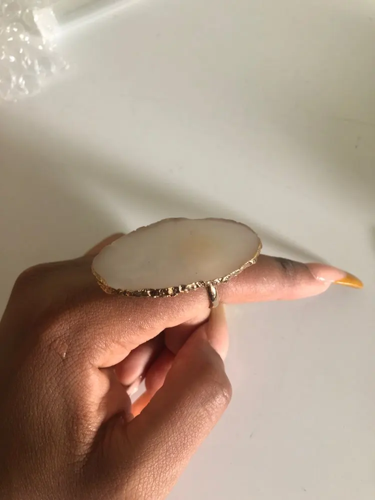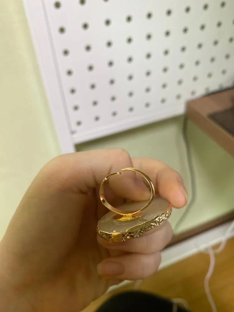 Отличная концепция для тех, кто делает гелевые ногти и хотел бы смешать гелевые цвета или блестки в гели. Кольцо регулируется так, что подходит для всех пальцев. Кажется хорошим и крепким на руке, хороший размер и отличная цена. Долговечность будет проверена с течением времени. Прибыла в Великобританию (Северная Ирландия) около 3 недель.