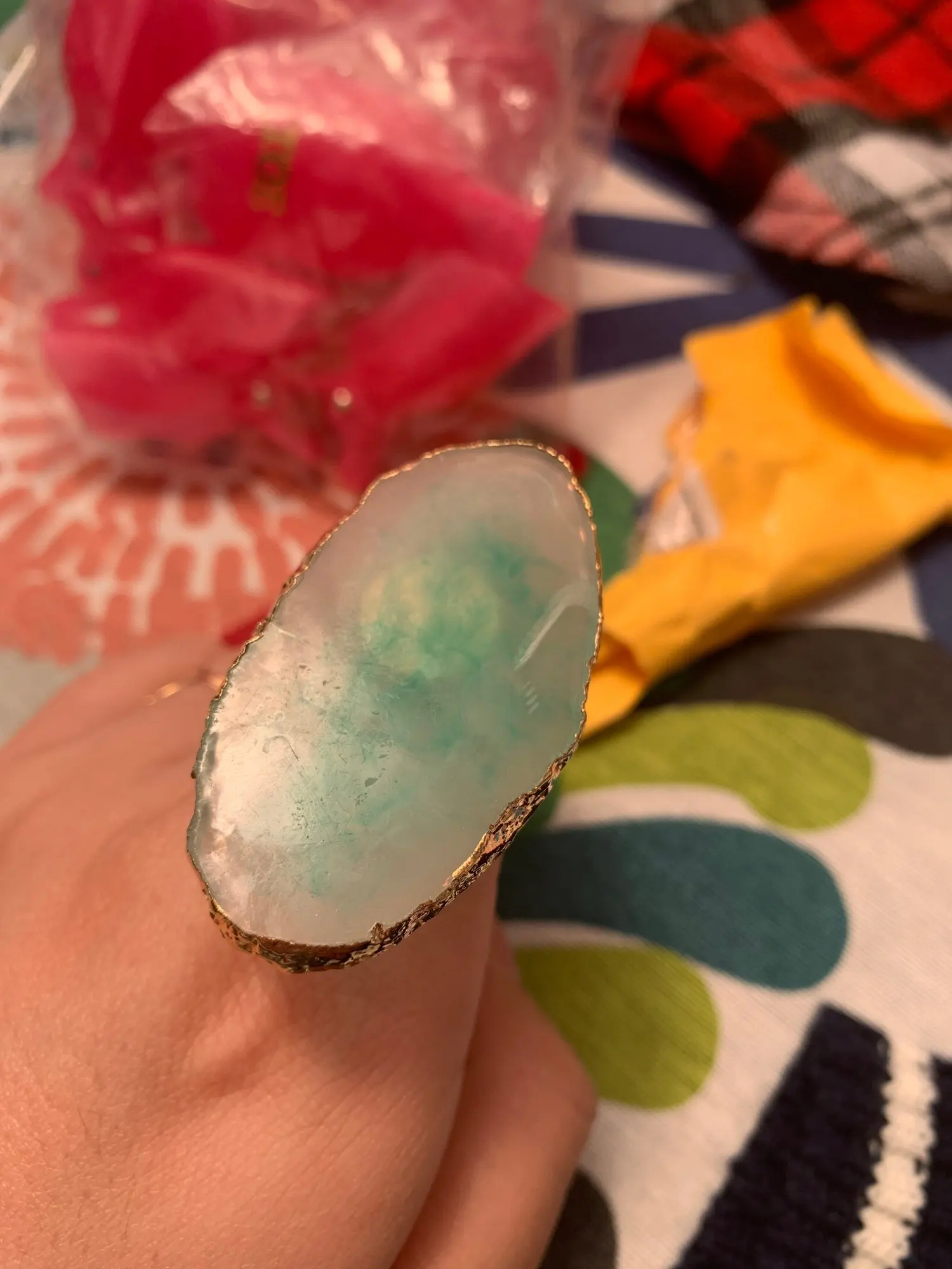 Я думала, что палитра будет больше а там камень как будто кольцо на палец носить, а так все пришло целое, немного с опозданием.