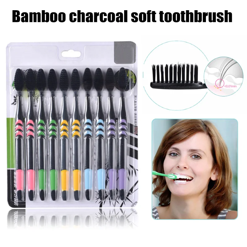10 шт.компл. ультра мягкая бамбуковая угольная нано зубная щетка уход за зубами ежедневный уход за полостью рта семейная бамбуковая Мягкая зубная щетка для волос