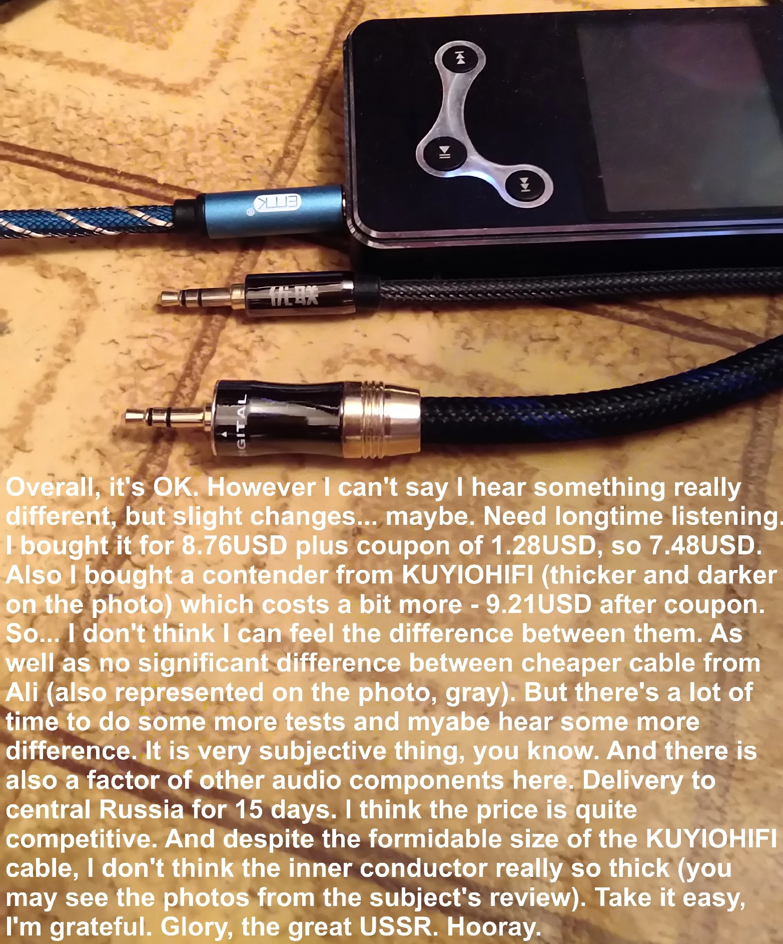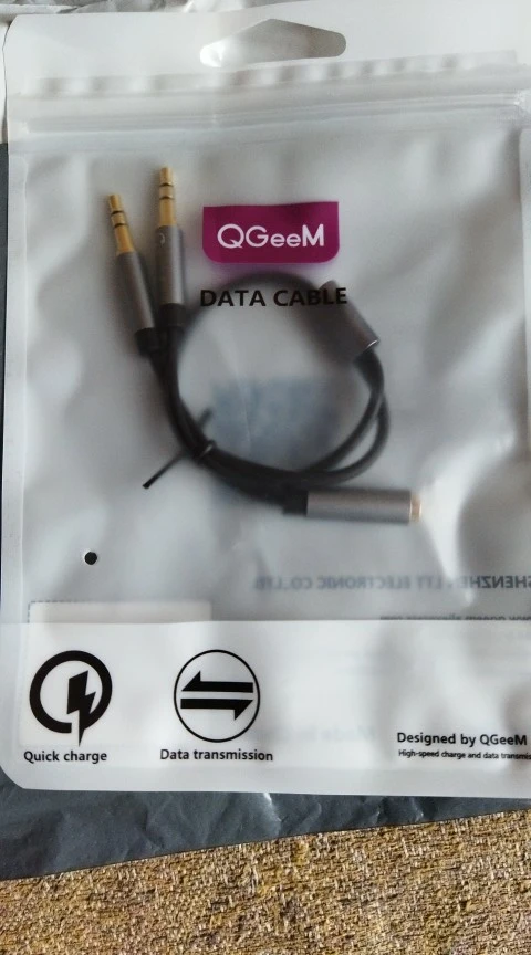 Неправильная упаковка. «Кабель передачи данных» вместо «аудио сплиттер» :)
