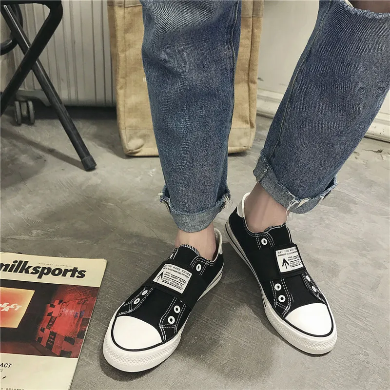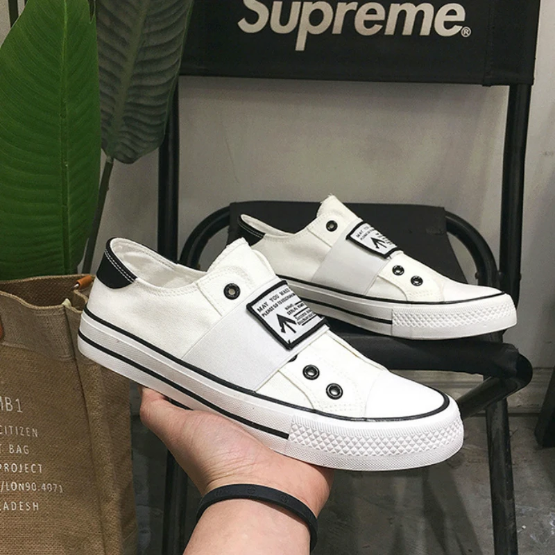 Кроссовки мужские без шнуровки, холщовые кеды, дышащие однотонные, ...