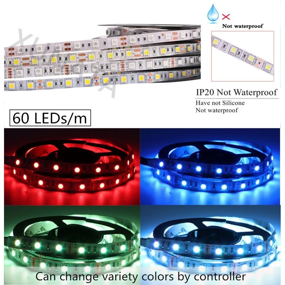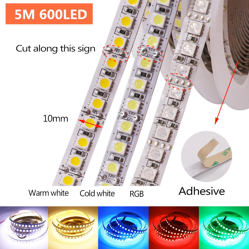 Светодиодная лента 5050 RGB, 12 В, 24 В, 120 светодиодовм, белыйтеплый белыйRGB, гибкая светодиодная лента, кухонные украшения для дома, 60 светодиодовм, 5 млот