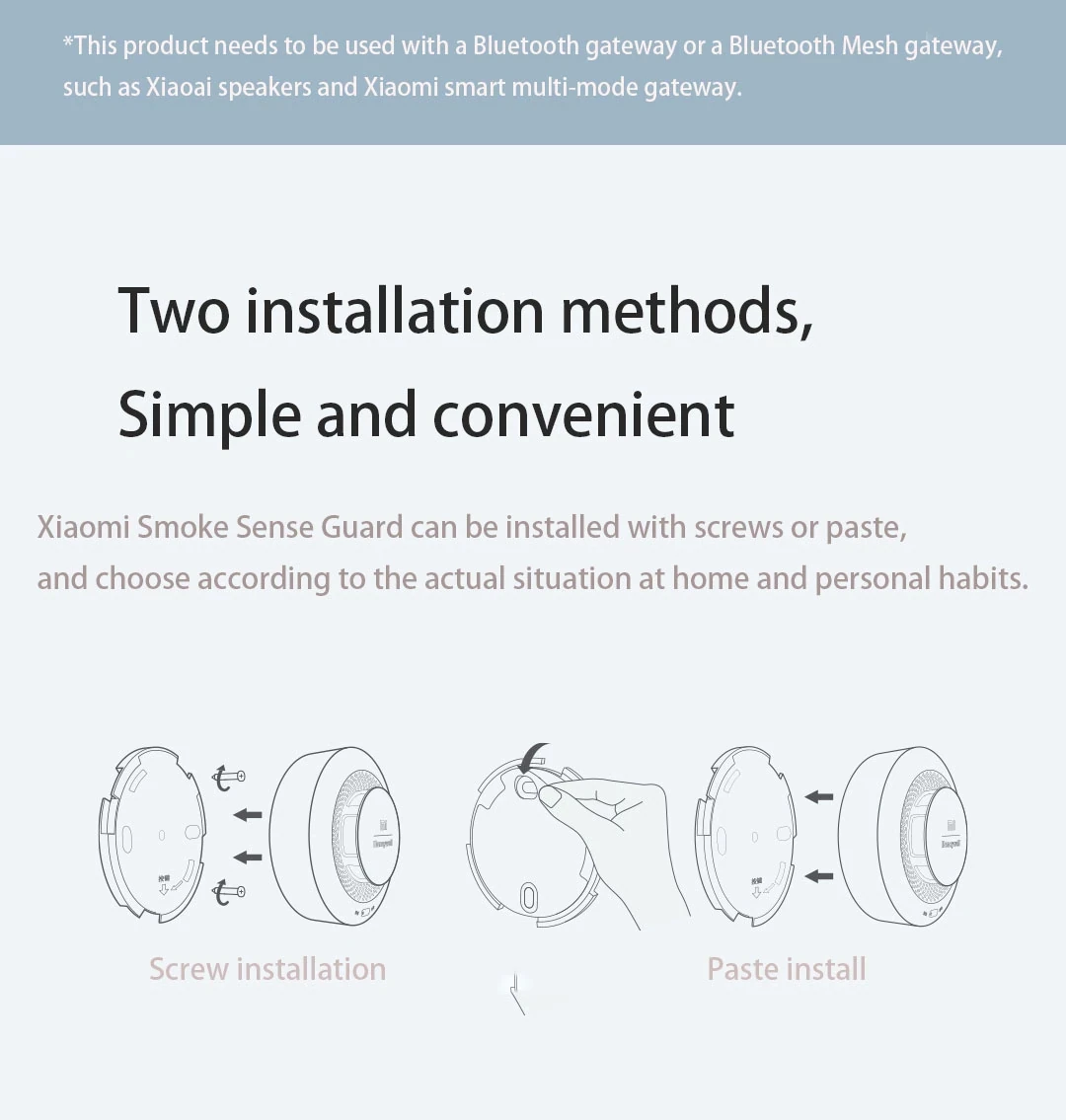 Xiaomi Smoke Sense Guard можно установить с помощью винтов или пасты и выбрать в соответствии с реальной ситуацией дома и личными привычками.