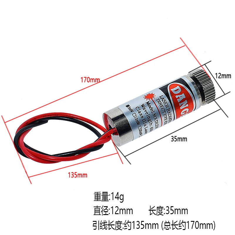 Лазерный модуль с красной линией, 5 мВт, 650 нм, Регулируемая фокусировка, 5 В, промышленный класс, P0.05