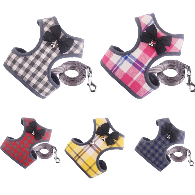 Комплект из шлейки и поводка для маленьких собак, жилет с бантом и ...