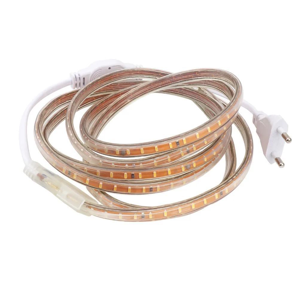 AC220V SMD 3014 Светодиодные ленты гибкий Водонепроницаемый лента Мощность Plug 120 светодиодовм полоса светильник 1 м 2 м 3 м 4 м 5 м 10 м 15 м 20 м 25 м возможностью погружения на глубину до 30 м 35 м JQ