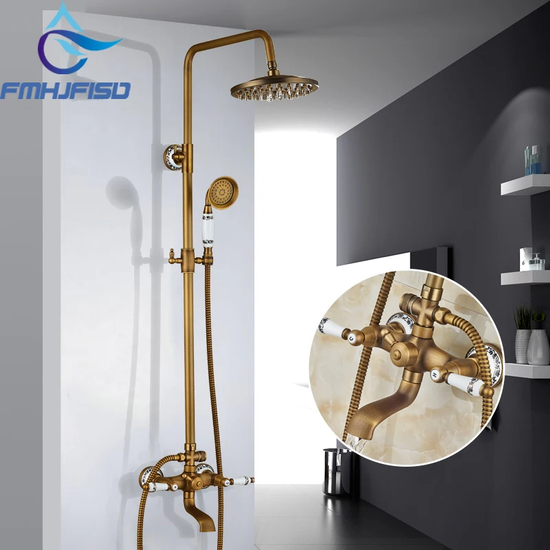 Смеситель для душа латунный в ванну, Душевая насадка 8 дюймов, кран горячей и холодной воды, водопроводный кран, античный