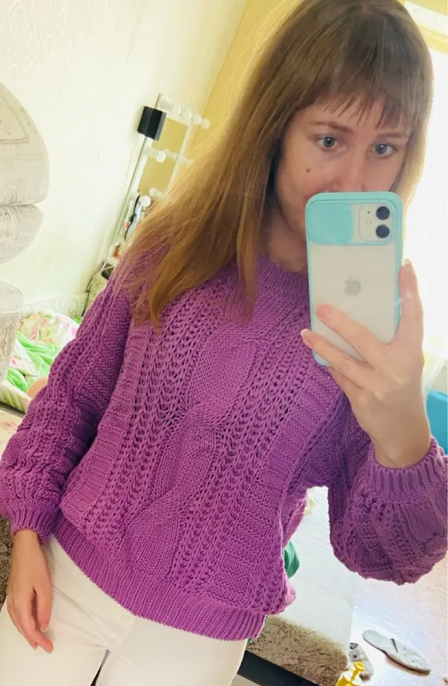 Это второй раз, когда я покупаю этот свитер, потому что он красивый, я не жалею об этой покупке, все мне завидуют. Сказочный цвет. Спасибо! Очень быстрая доставка