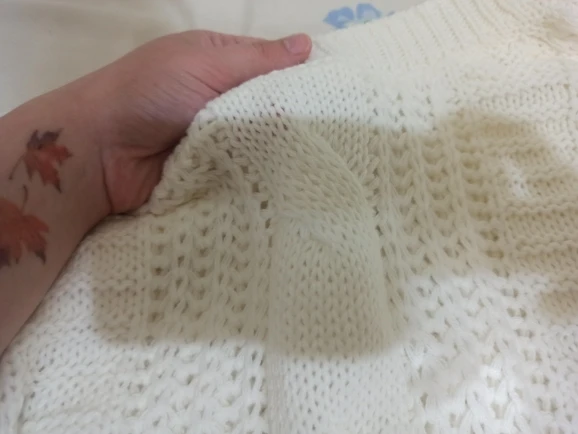 Товар полностью соответствует описанию, пришёл быстро - за 2 недели. На российский 44 лёг хорошо. Нет торчащих ниток и запаха. Продавец вдобавок положил пакетик саше, пахнущий молоком и красную нить с цветком. На мою руку подошла. Свитер приятный к телу, по ощущениям, как будто в пух проваливаешься, мягкий и нежный. Продавца рекомендую.