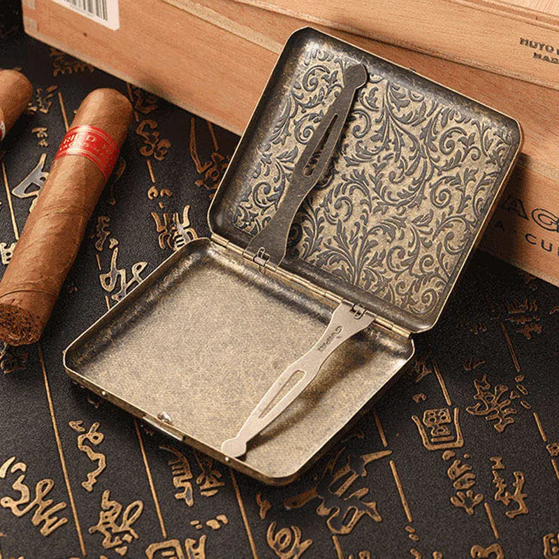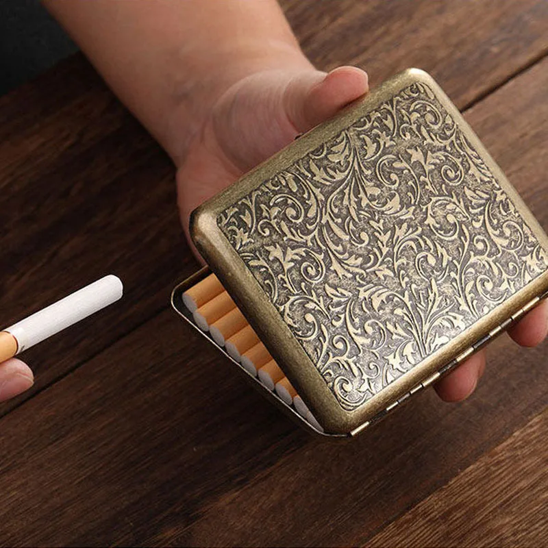Винтажный металлический чехол для сигарет, 20 шт., классический дизайн, чехол для сигарет, Подарочная коробка для мужчин, аксессуары для сигарет