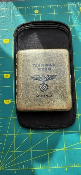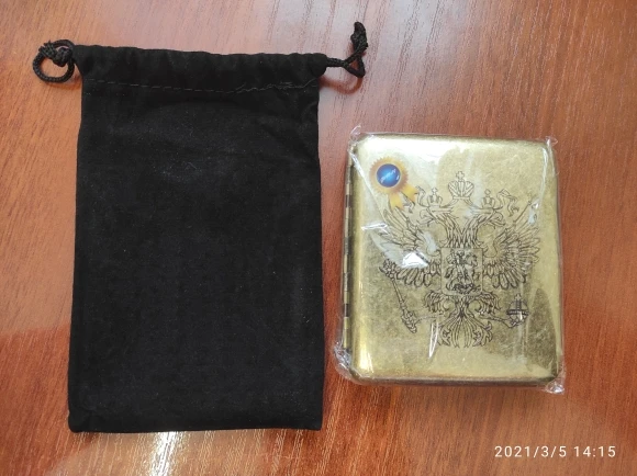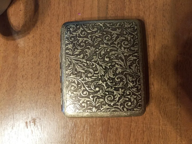 Отличный портсигар . Выглядит, как антикварный. Искусственное состаривание отличный ход , так как не видно будет царапин в процессе эксплуатации. 20 сигарет входят тесновато, но все же входят. Шел недели три, но пришел целый и в чехле мешочке. Товар отличный продавца рекомендую.