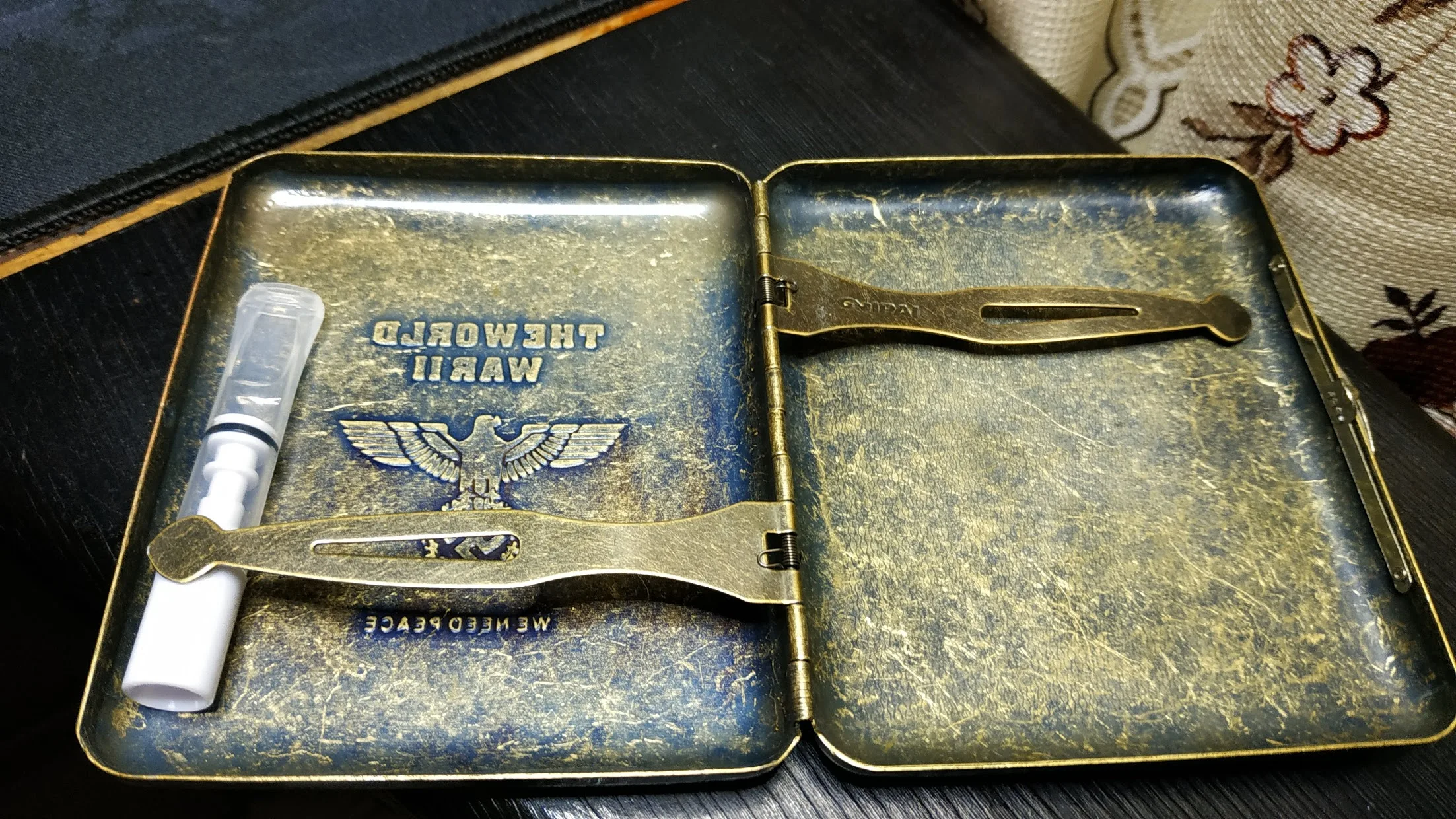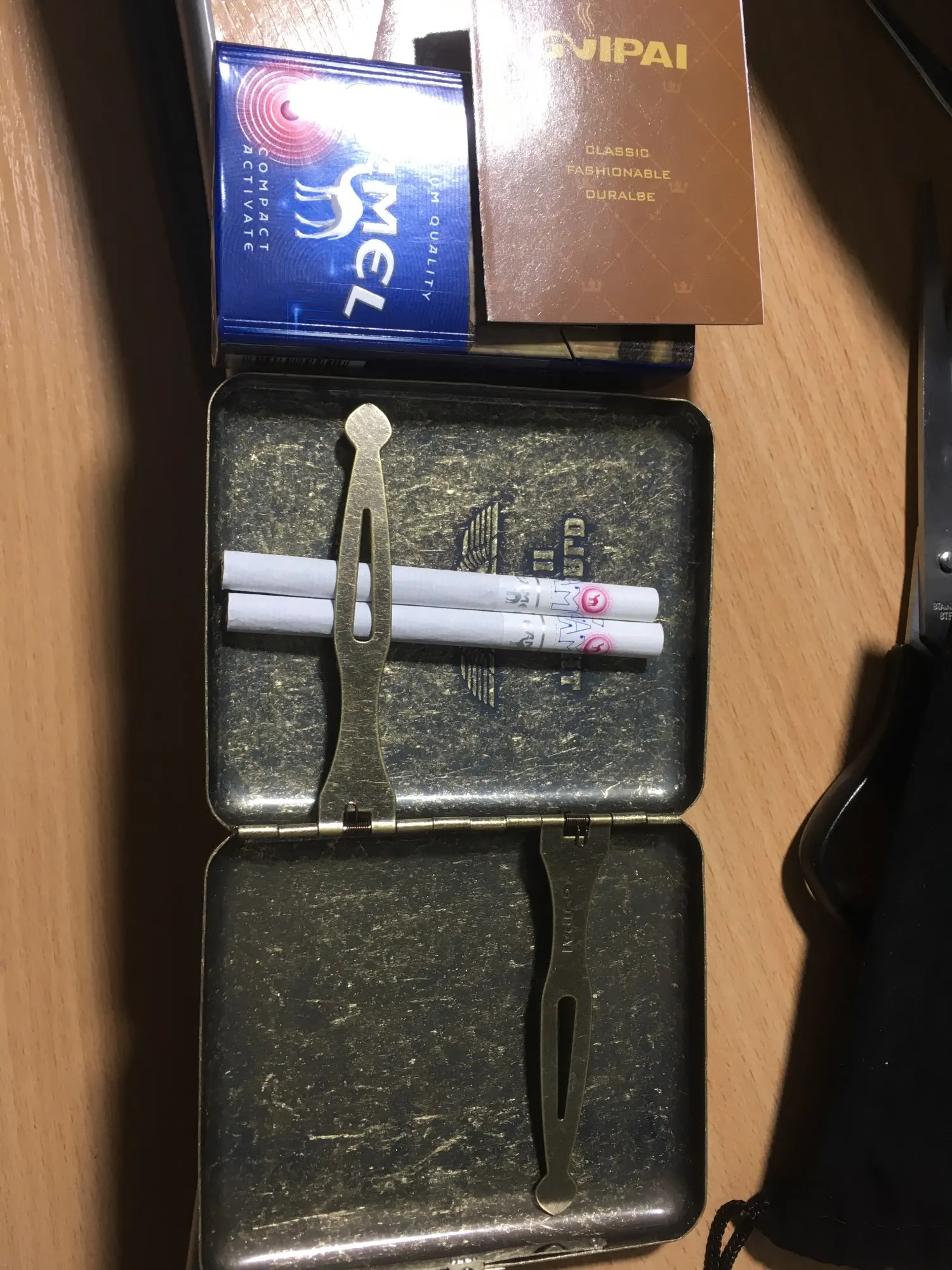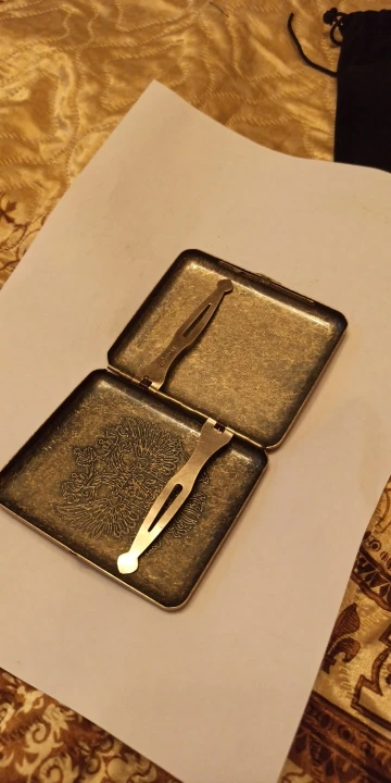 портсигар хороший только крышка слегка играет из стороны в сторону и пружины слабые