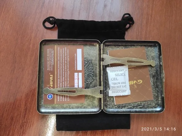 Товар полностью соответствует описанию. Нормальный портсигар, сделан аккуратно, ни люфтов, ни перекосов, все чётко. Единственный минус, пружинки на прижимах слабоваты, посмотрим на сколько хватит. В остальном всё хорошо, товар и продавца рекомендую!!!