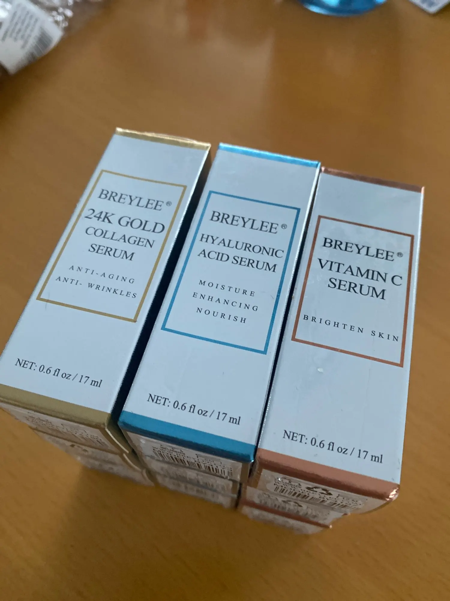 Заказ шёл полтора месяца, очень долго, не отслеживался. Упаковка солидная, не стыдно и в подарок заказать. Пока из трех сывороток испробовала только золотую. Ощущения приятные: сыворотка не жирная, не липкая, впиталась быстро. Крем поверх наносить уже не хочется. Минус - золотинки на лице остаются))