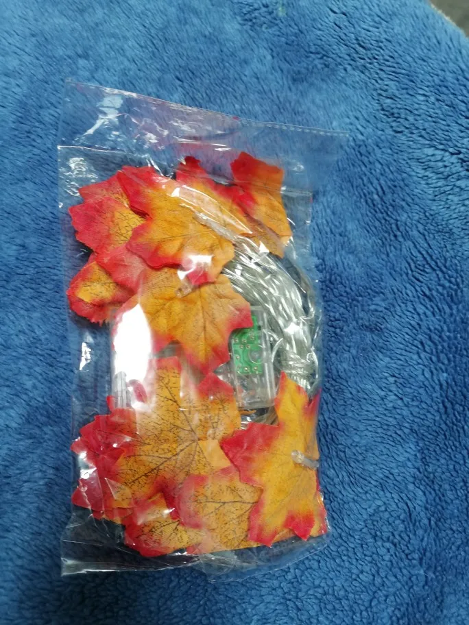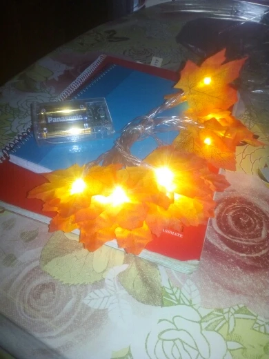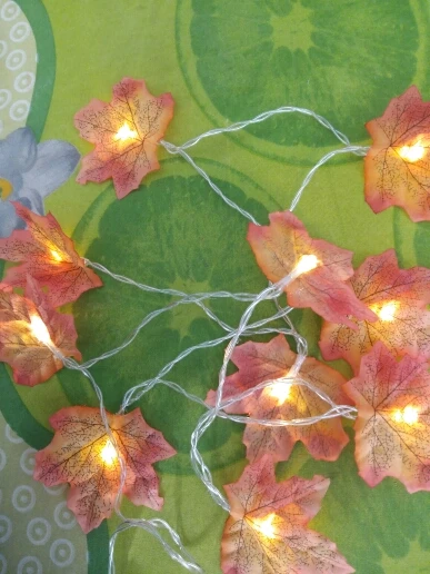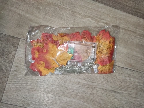 Красивая осенняя гирлянда, сделана качественно, упакована хорошо, пришла в целости)) Работает в двух режимах (мигает и просто светит) от трёх пальчиковых батареек. Листики яркие и аккуратно вырезанные, но из-за того, что гирлянда была сложена во время транспортировки, немного помялись. Но если есть желание, можно немного прогладить утюгом, сами не разгладятся. Рекомендую))